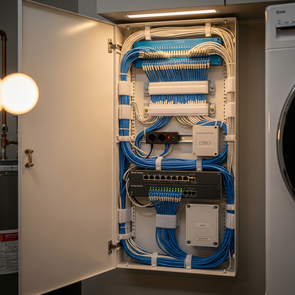 A powerful network begins with a reliable wired foundation. We install Category 6 (Cat6) data cabling to ensure hardwired devices—TVs, media players, computers, gaming consoles, workstations—receive maximum bandwidth and minimal latency. Cat6 structured wiring ensures your network is future-proof, supporting gigabit speeds, 4K/8K streaming, and high-capacity smart home environments.